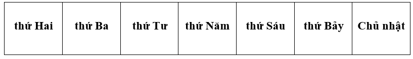 Em tô màu xanh vào những ngày: thứ hai, thứ ba, thứ tư, thứ năm, thứ sáu.