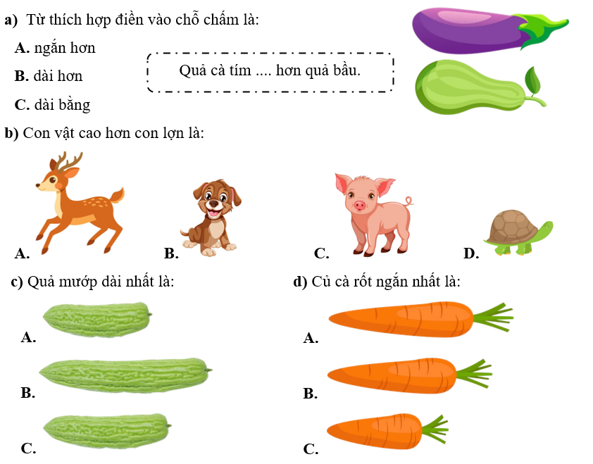 Phiếu bài tập hàng ngày Toán lớp 1 Chân trời sáng tạo Bài 13. Độ dài (Tiết 1) có đáp án