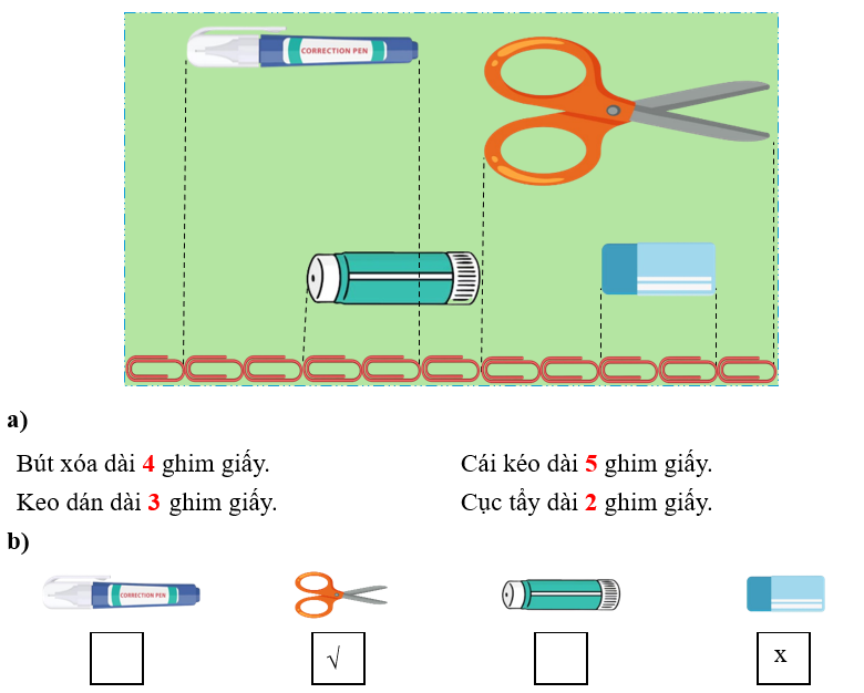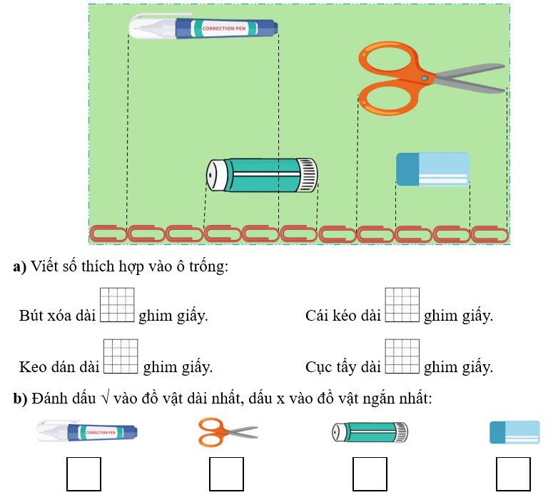 Phiếu bài tập hàng ngày Toán lớp 1 Chân trời sáng tạo Bài 14. Đo độ dài (Tiết 1) có đáp án