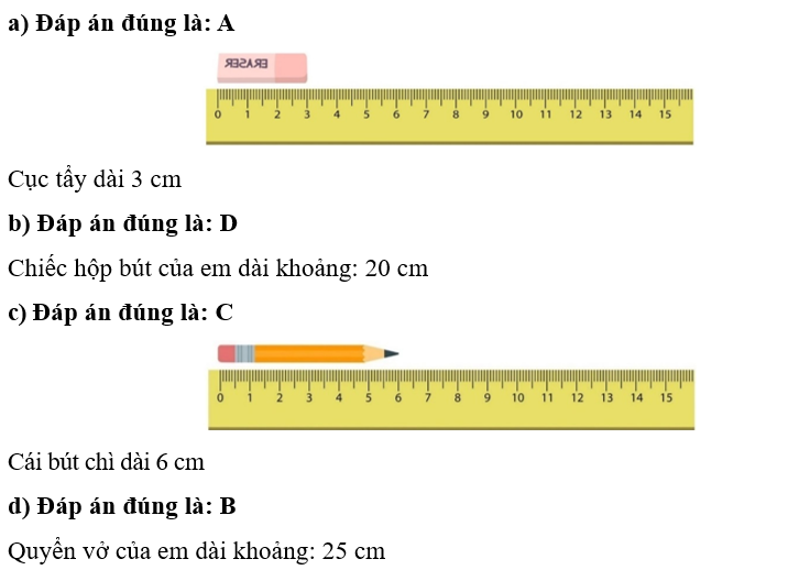 Phiếu bài tập hàng ngày Toán lớp 1 Chân trời sáng tạo Bài 15. Xăng-ti-mét. Đơn vị đo độ dài (Tiết 1) có đáp án