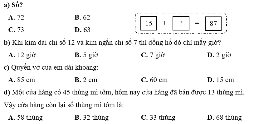 15 câu trắc nghiệm Toán lớp 1 Kết nối tri thức Bảng các số từ 1 đến 100 có đáp án