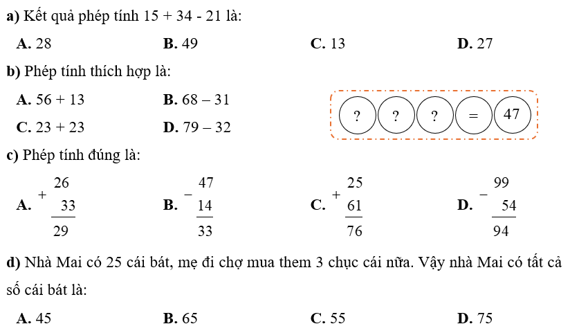 15 câu trắc nghiệm Toán lớp 1 Kết nối tri thức Bảng các số từ 1 đến 100 có đáp án