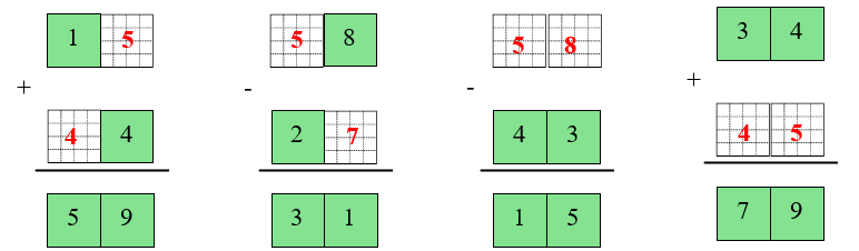 A. 56 + 13 = 69 B. 68 – 31 = 37