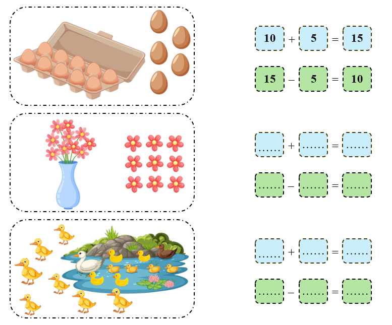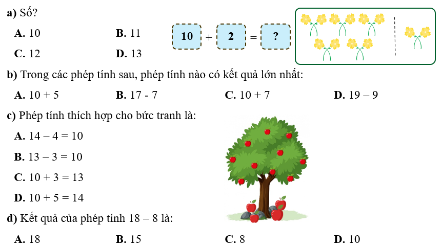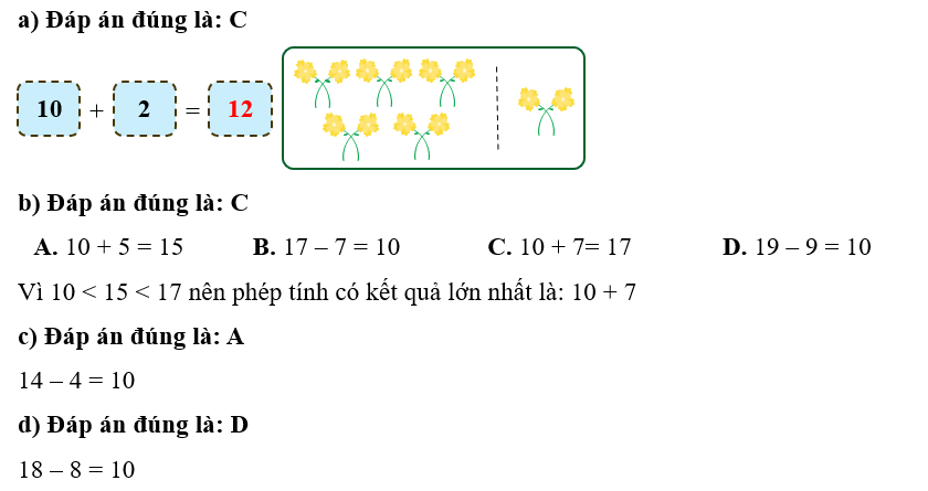 Phiếu bài tập hàng ngày Toán lớp 1 Chân trời sáng tạo Bài 2. Các phép tính dạng 10 + 4, 14 - 4 có đáp án