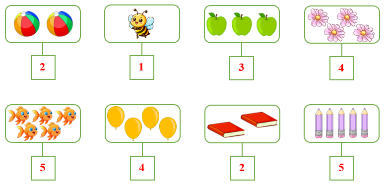 Phiếu bài tập hàng ngày Toán lớp 1 Chân trời sáng tạo Bài 2. Các số 4, 5 (Tiết 1) có đáp án