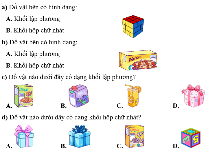 Phiếu bài tập hàng ngày Toán lớp 1 Chân trời sáng tạo Bài 2. Khối hộp chữ nhật - Khối lập phương có đáp án