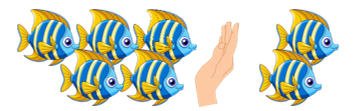 Có 7 con cá, bớt 2 con cá. Còn lại 5 con cá.