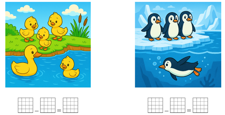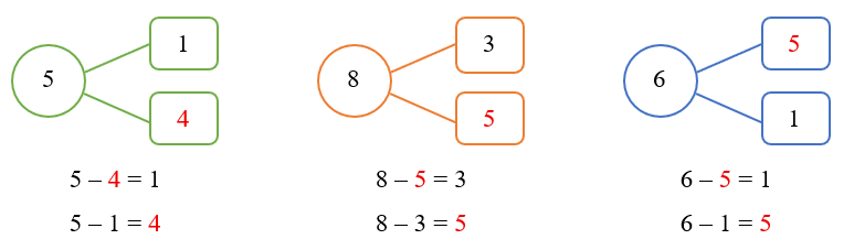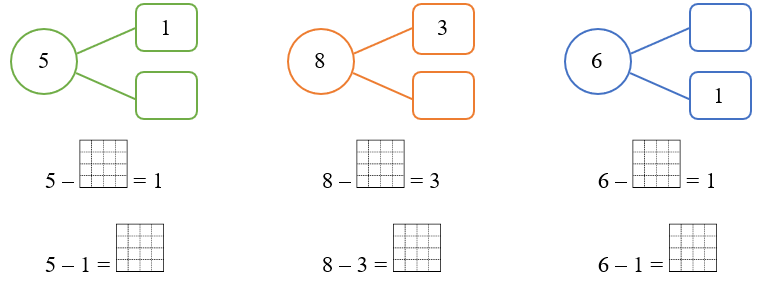 Phép tính thích hợp với sơ đồ bên là: 5 – 1 = 4