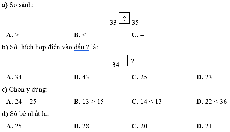 Bài tập ôn hè Toán lớp 1 Chuyên đề 1: Đếm, đọc, viết, so sánh các số trong phạm vi 100 có đáp án