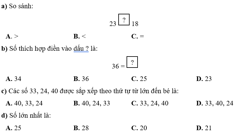 Bài tập ôn hè Toán lớp 1 Chuyên đề 1: Đếm, đọc, viết, so sánh các số trong phạm vi 100 có đáp án