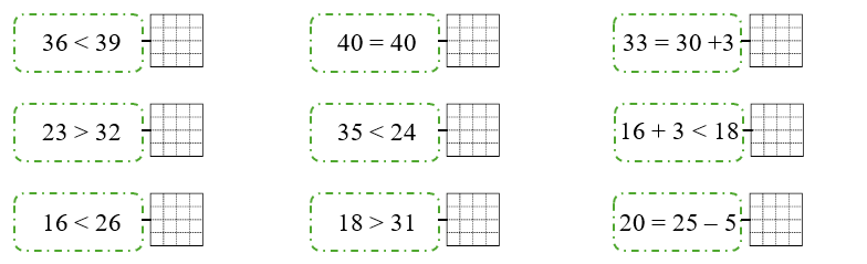 Phiếu bài tập hàng ngày Toán lớp 1 Chân trời sáng tạo Bài 5. So sánh các số (Tiết 2) có đáp án