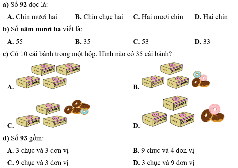 15 câu trắc nghiệm Toán lớp 1 Kết nối tri thức Bảng các số từ 1 đến 100 có đáp án