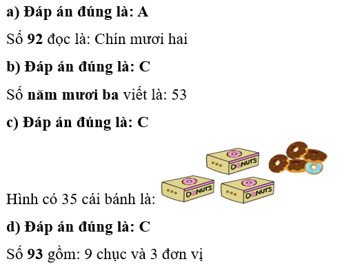 Bài tập ôn hè Toán lớp 1 Chuyên đề 1: Đếm, đọc, viết, so sánh các số trong phạm vi 100 có đáp án