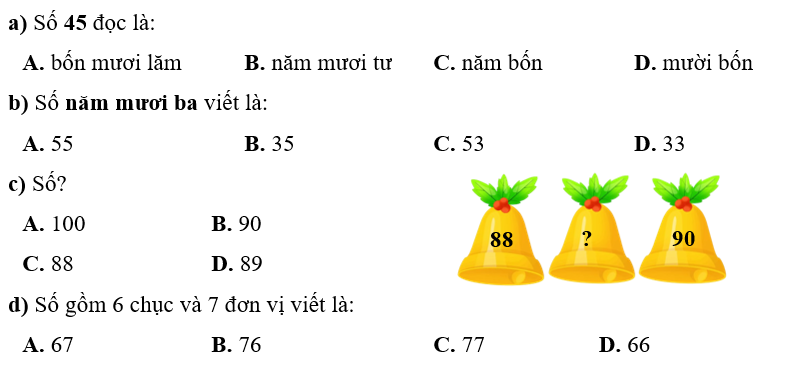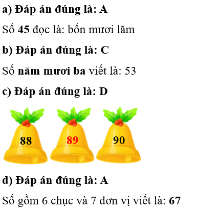 15 câu trắc nghiệm Toán lớp 1 Kết nối tri thức Bảng các số từ 1 đến 100 có đáp án
