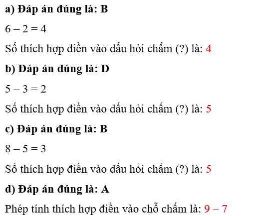Phiếu bài tập hàng ngày Toán lớp 1 Chân trời sáng tạo Bài 6. Trừ bằng cách đếm bớt (Tiết 1) có đáp án