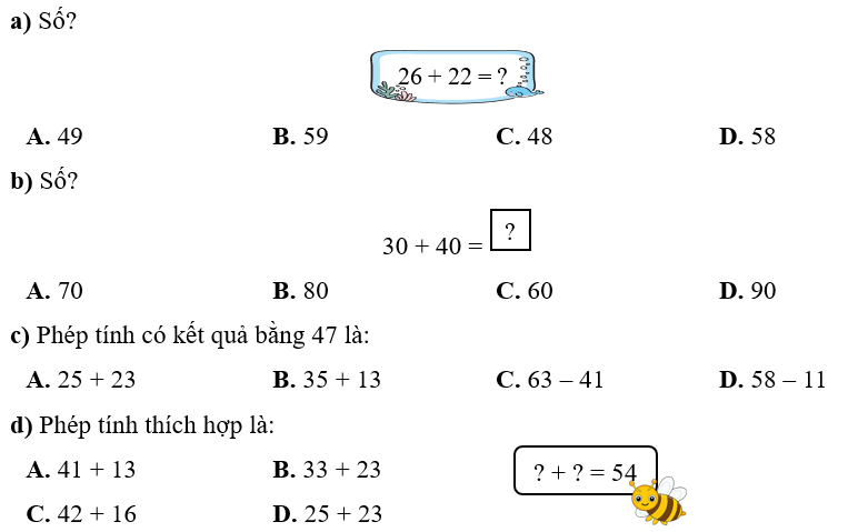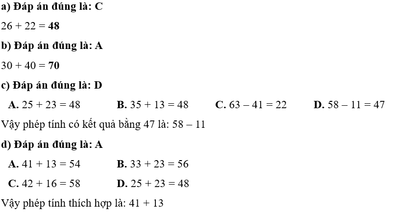Phiếu bài tập hàng ngày Toán lớp 1 Chân trời sáng tạo Bài 8. Các phép tính dạng 34 + 23, 57 - 23 (Tiết 1) có đáp án