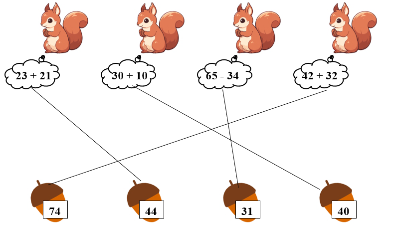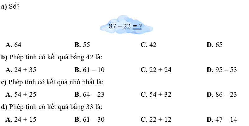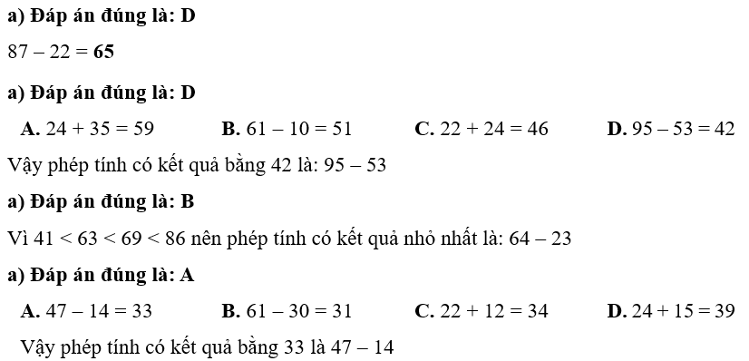 Phiếu bài tập hàng ngày Toán lớp 1 Chân trời sáng tạo Bài 8. Các phép tính dạng 34 + 23, 57 - 23 (Tiết 3) có đáp án