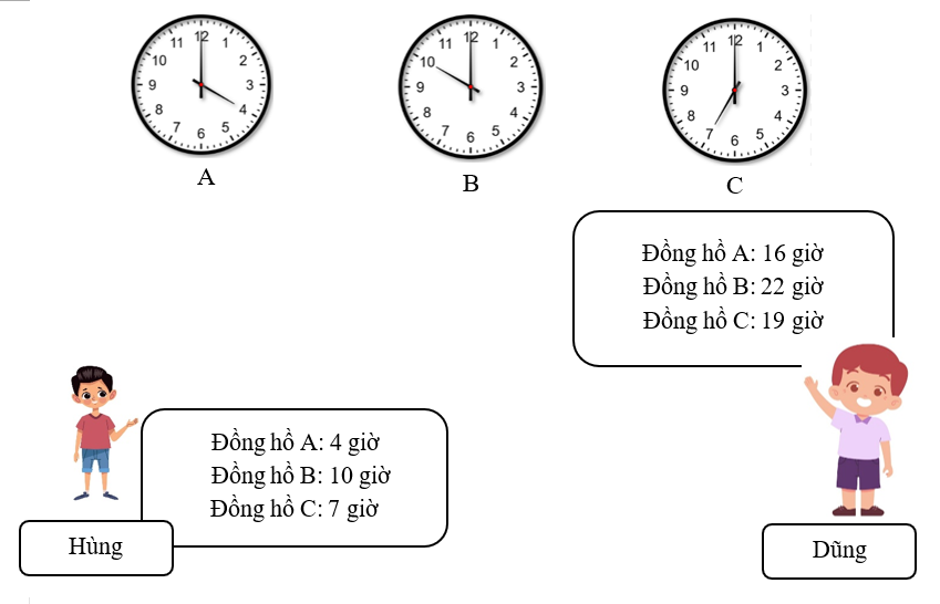 Đồng hồ D chỉ 8 giờ tối (hay 20 giờ)