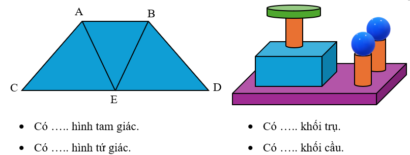 Bài tập ôn hè Toán lớp 2 Dạng 7: Đếm tam giác, tứ giác có đáp án