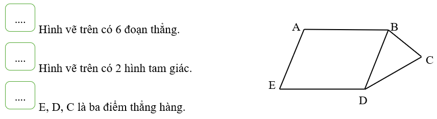 Hình vẽ bên có 3 điểm thẳng hàng là: A, E, B