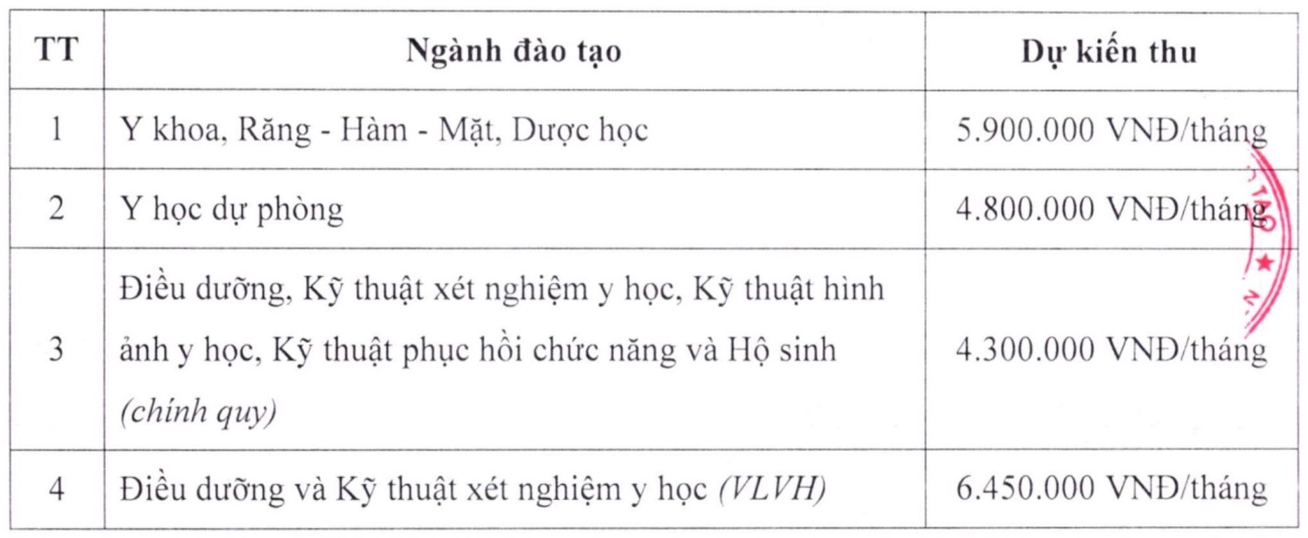 - Mức học phí dự kiến năm học 2025 - 2026 theo các ngành đào tạo như sau: