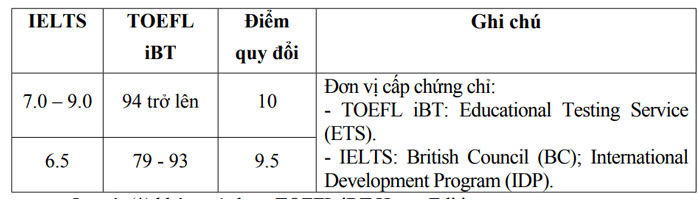 ۰ IELTS đạt từ 6.5 trở lên hoặc TOEFL iBT đạt từ 79 trở lên