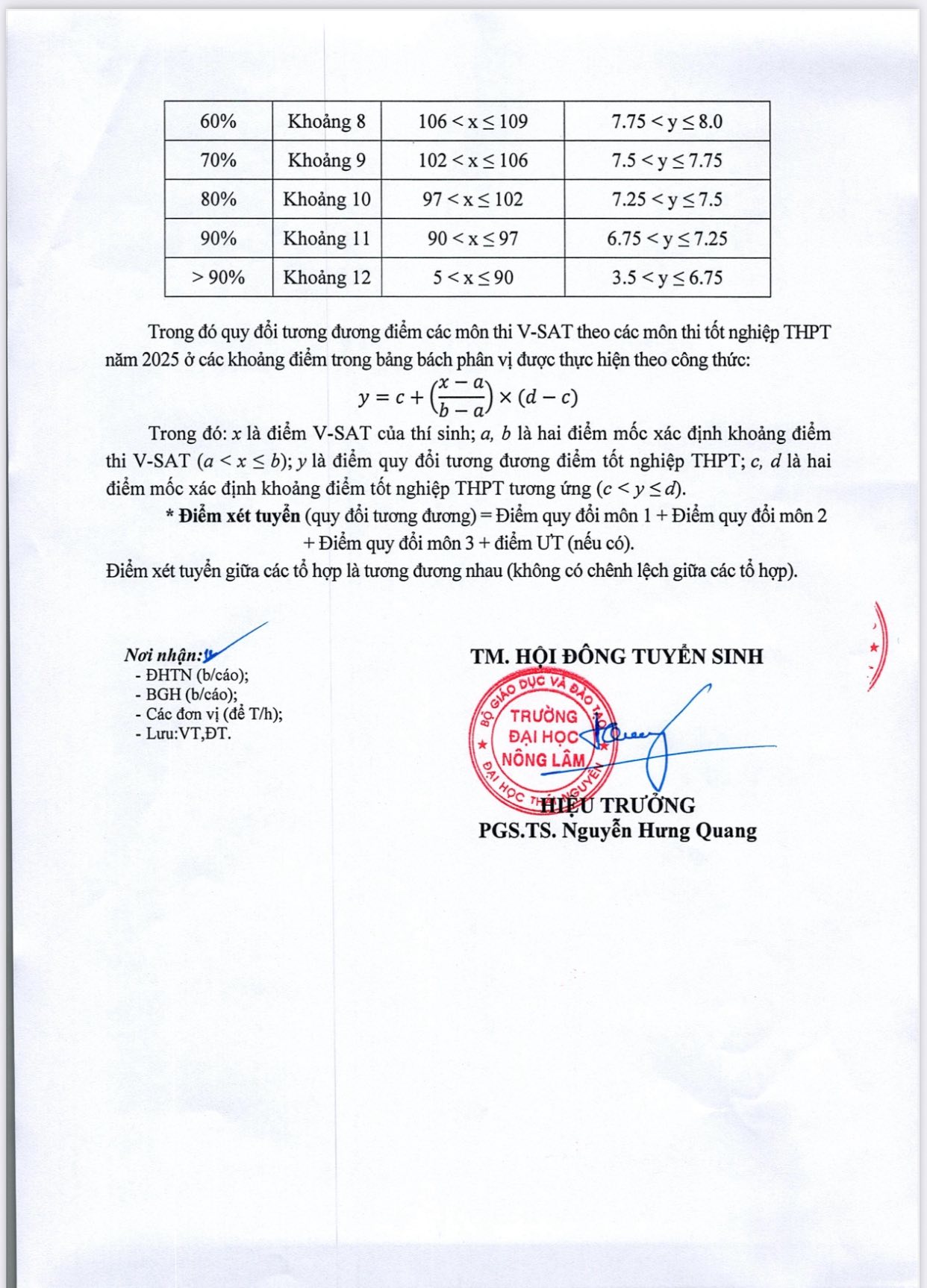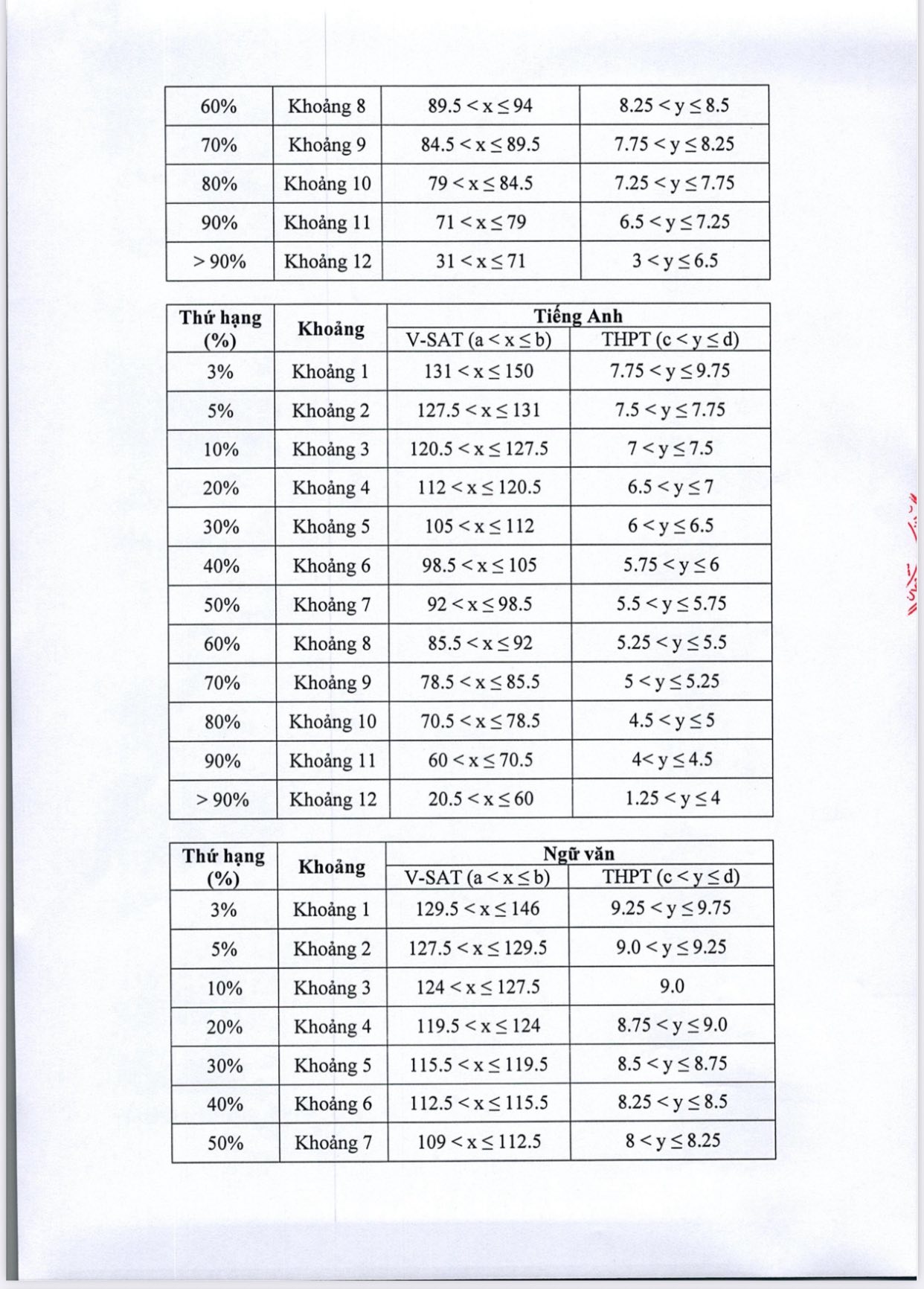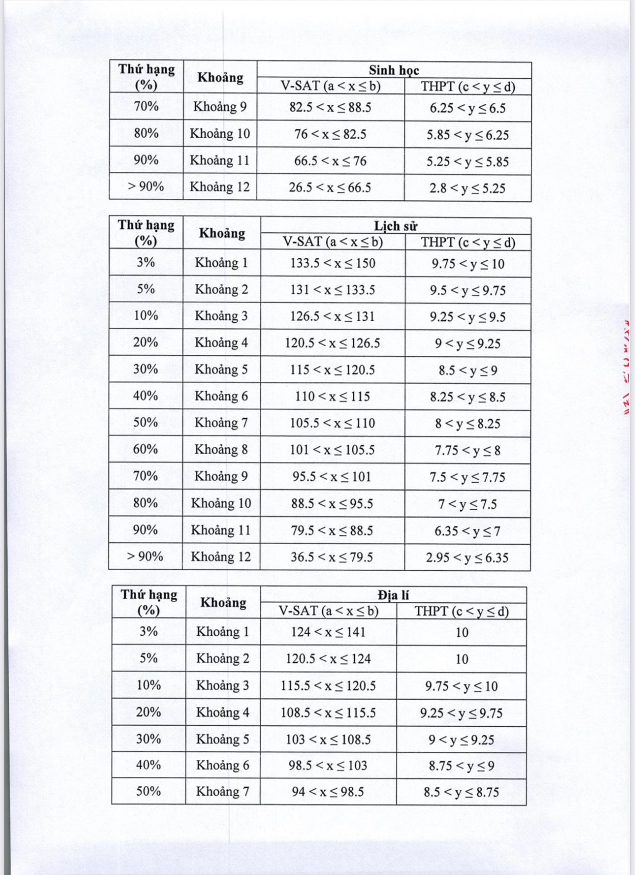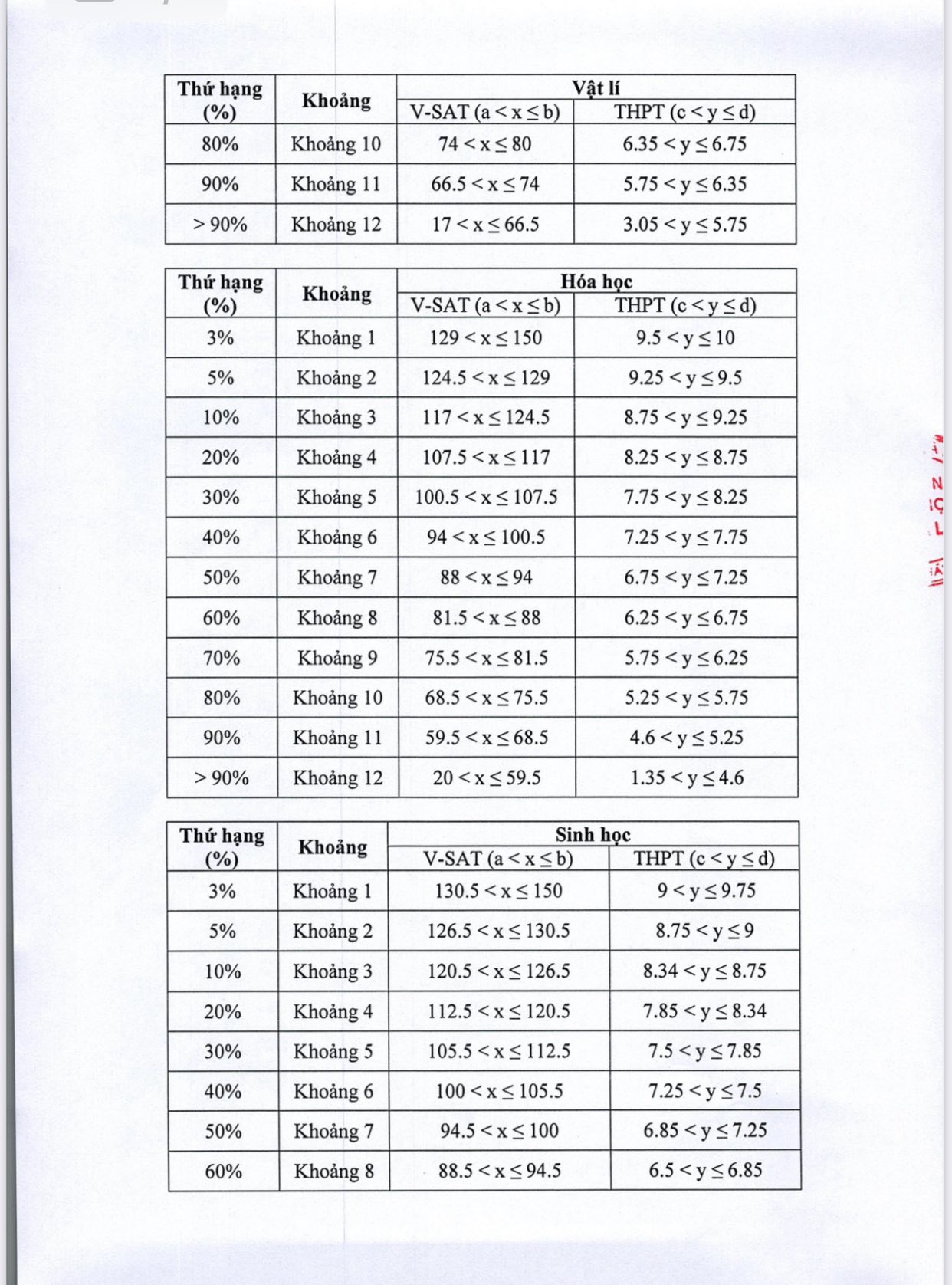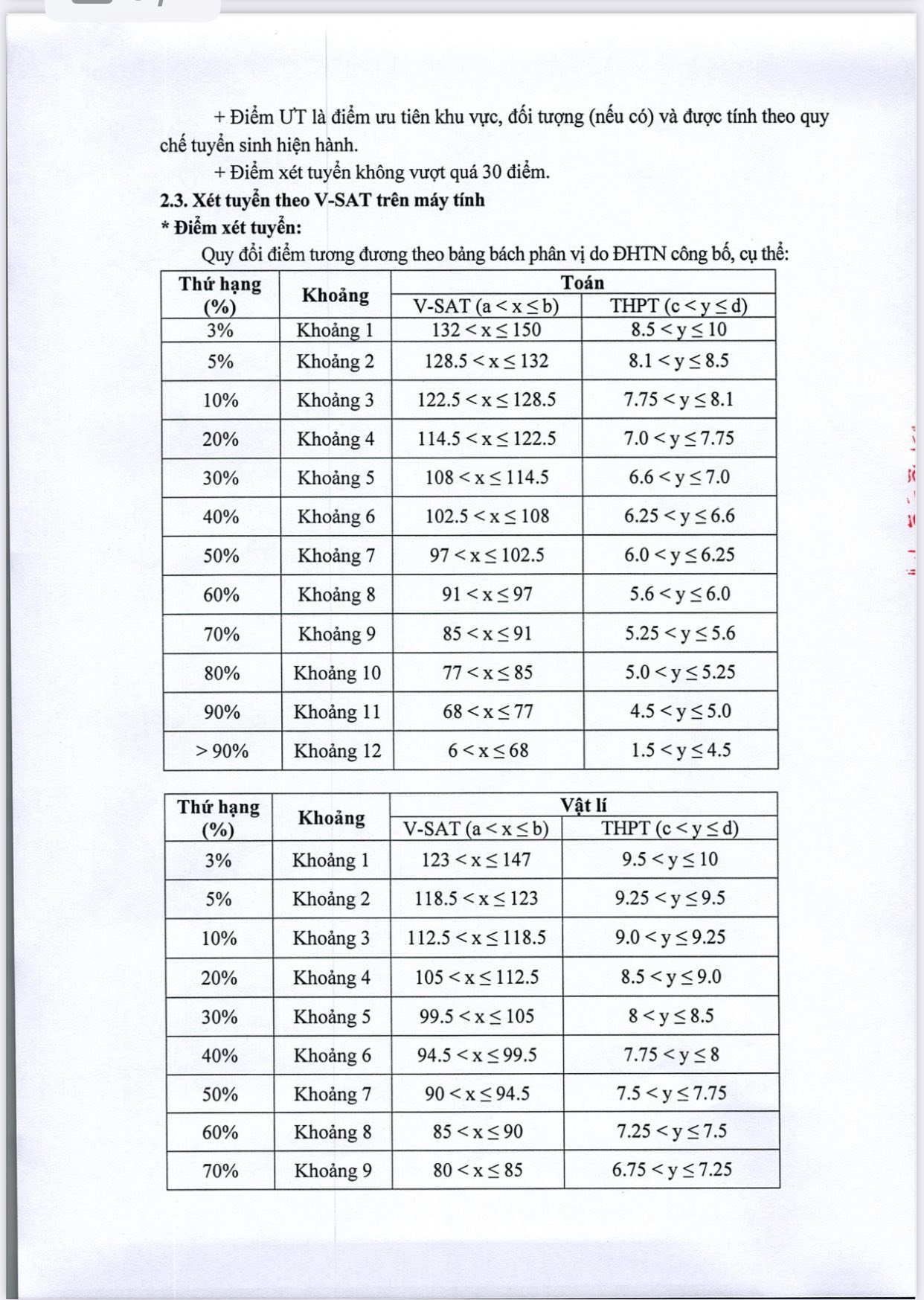 + Điểm V-SAT được quy đổi sang thang điểm 10 dựa trên bảng bách phân vị và nội suy tuyến tính của ĐH Thái Nguyên.