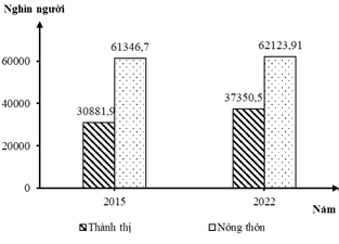 Số dân nước ta phân theo thành thị và nông thôn năm 2015 và 2022