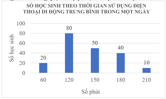 1. Khảo sát 200 học sinh khối 6 của một trường THCS về thời gian sử dụng điện thoại di động trung bình mỗi ngày (đơn vị: phút). Kết quả thể hiện ở biểu đồ sau: