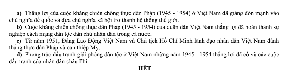 Câu 4. Cuộc kháng chiến chống thực dân Pháp (1945 - 1954) của quân dân Việt Nam có tính chất nào sau đây?