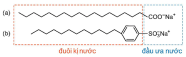 Câu 3. Xà phòng và chất giặt rửa tổng hợp có cấu tạo gồm hai phần: Phần phân cực (“đầu” ưa nước) và phần không phân cực (“đuôi” kị nước).