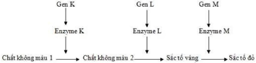 Câu 1. Ở một loài hoa, xét ba cặp gene phân li độc lập, các gene này quy định các enzyme khác nhau cùng tham gia vào một chuỗi phản ứng hóa sinh để tạo nên sắc tố ở cánh hoa theo sơ đồ sau:
