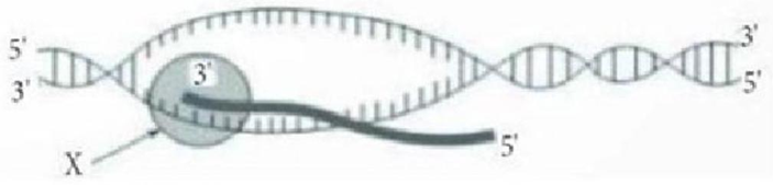 Câu 4. Hình vẽ dưới đây mô tả một cơ chế di truyền cấp độ phân tử đang diễn ra. Cấu trúc X trên hình vẽ là