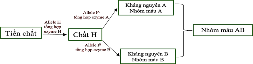 Câu 1. Ở người, sự hình thành nhóm máu ABO do hoạt động phối hợp của 2 gene H và I, được thể hiện trong sơ đồ sau đây: