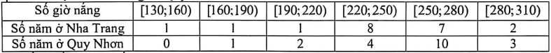 Câu 4: Bảng sau thống kê lại tổng số giờ nắng trong tháng 6 của các năm từ 2002 đến 2021 tại hai trạm quan trắc đặt ở Nha Trang và Quy Nhơn.